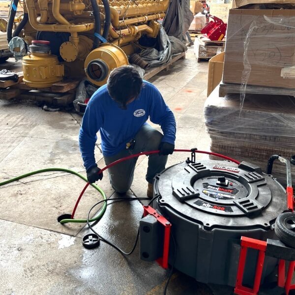 Hydro Jetting: This method uses a tool that sprays a stream of water up to 3500 PSI with specialized nozzle heads to break up any obstruction and allow it to wash on down the pipe.
